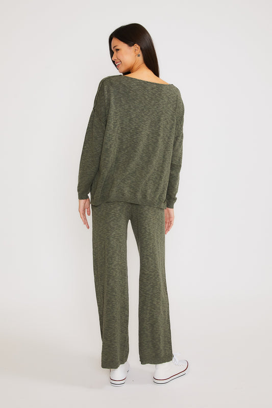 OLIVE SWEATER TOP + PANTS W/ POCKETS SET
