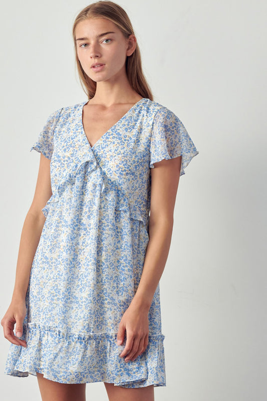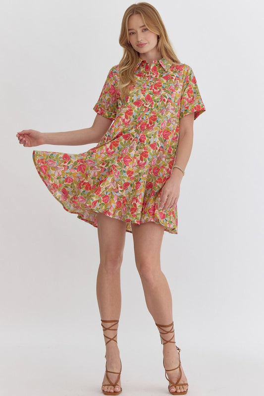 Lined Shortsleeve Dress W/ Tie Front-Raspberry