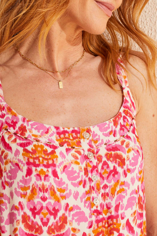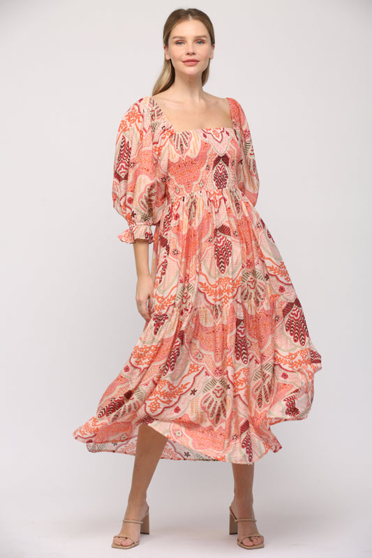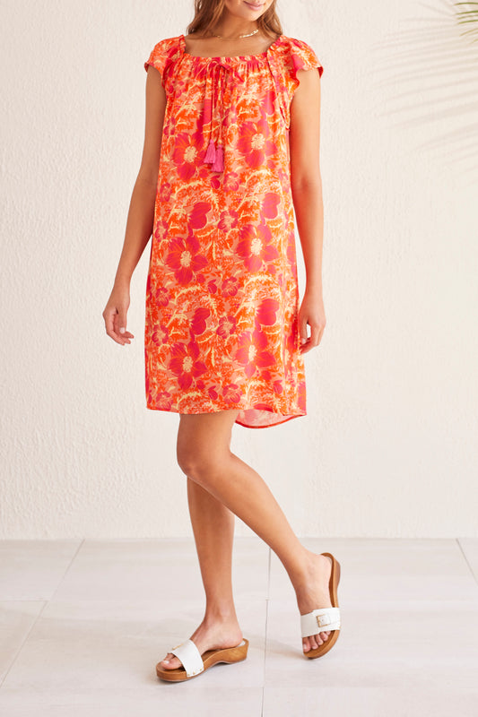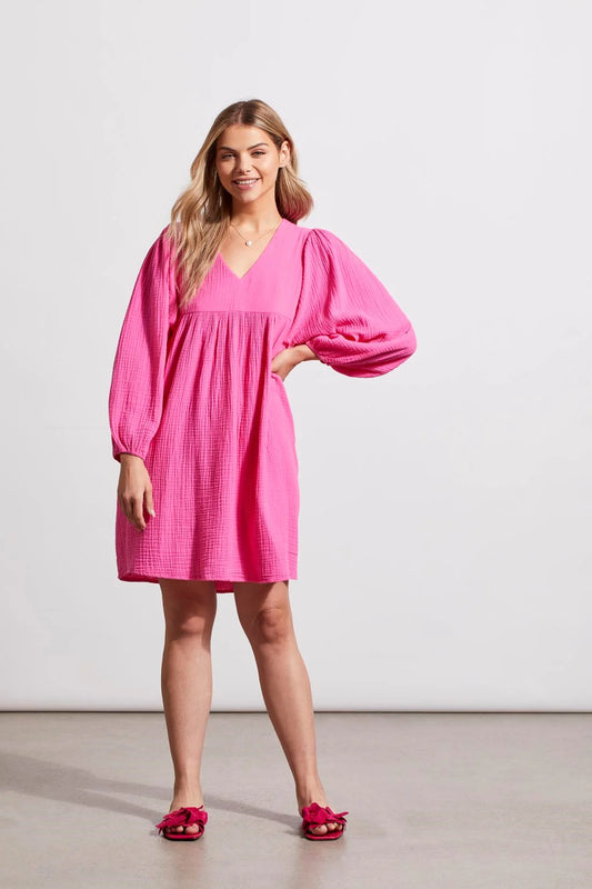 Hot Pink Cotton Gauze Puffy Sleeve Dress