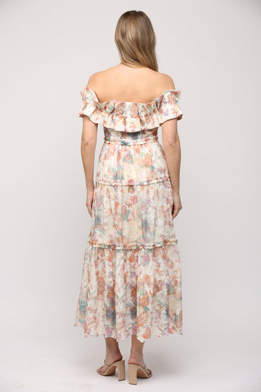 CREAM MULTI OFF SHOULDER TIERED MAXI
