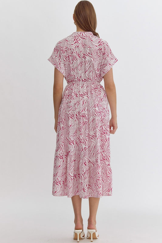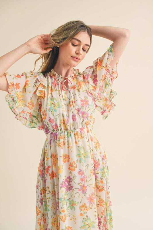 Eggplant V-Neck Ruffle Sleeve Tiered Midi Dress