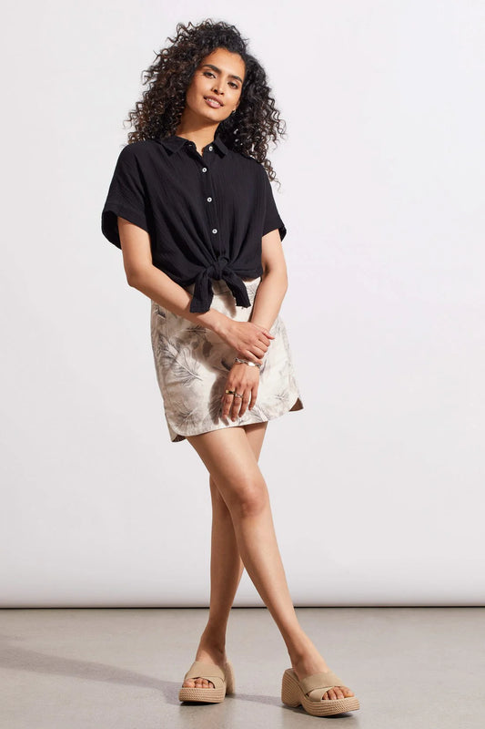Black Cotton Gauze Button-Up Shirt With Short Sleeves