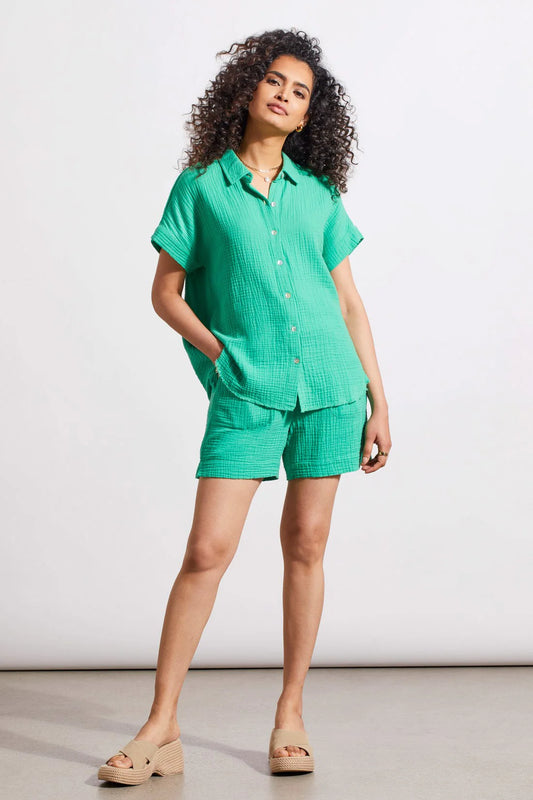 Jademist Cotton Gauze Button-Up Shirt With Short Sleeves