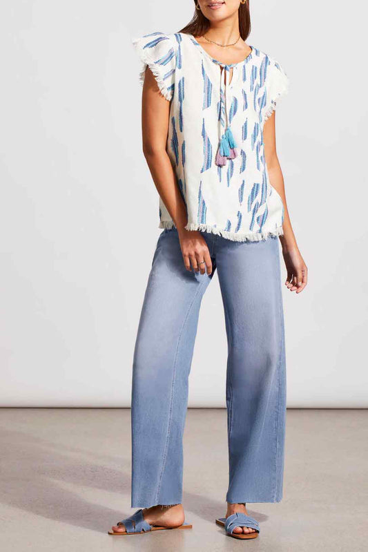 Tribal 3/4 Slv V-Neck Jacquared Sweater Sandust Milti
