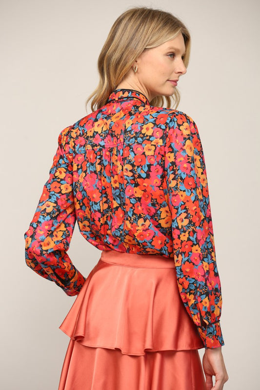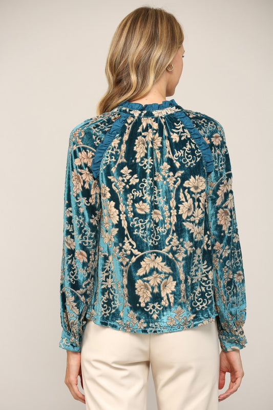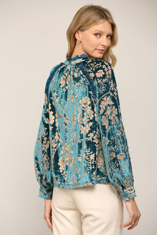 RUFFLE TRIMMED VELVET BLOUSE / TASSEL TIE REG