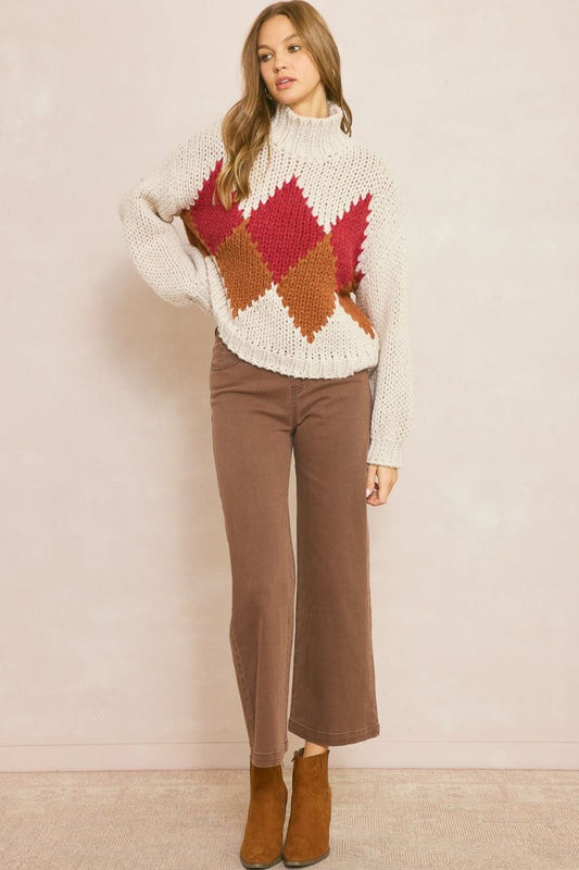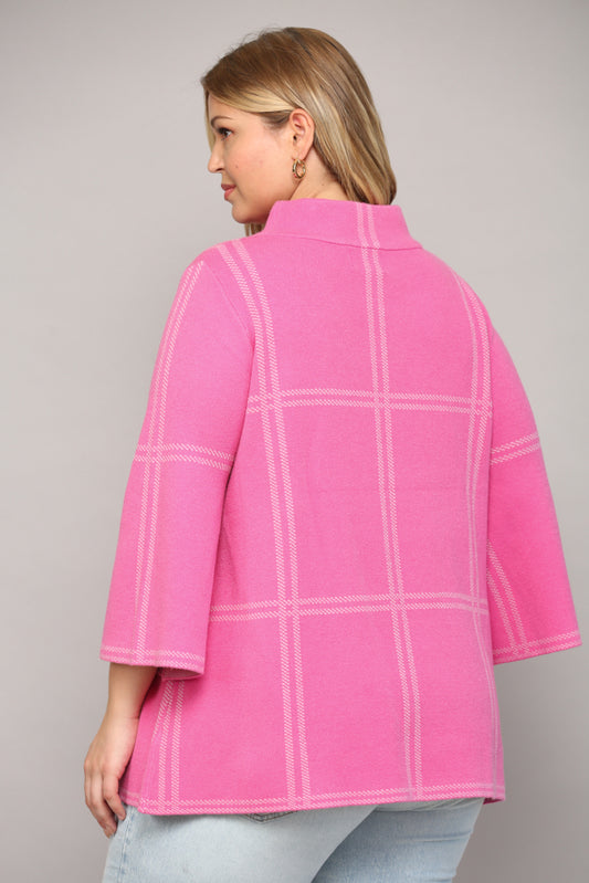 CHECKER MOCK NECK SWEATER HOT PINK /GREY PLUS