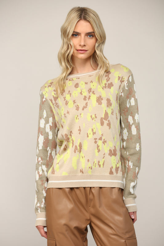 ANIMAL JACQUARD KNIT SWEATER TAUPE/OLIVE