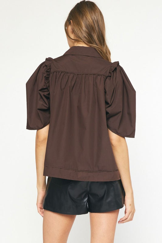 Mocha Floral Print Half Sleeve Mock Neck Top