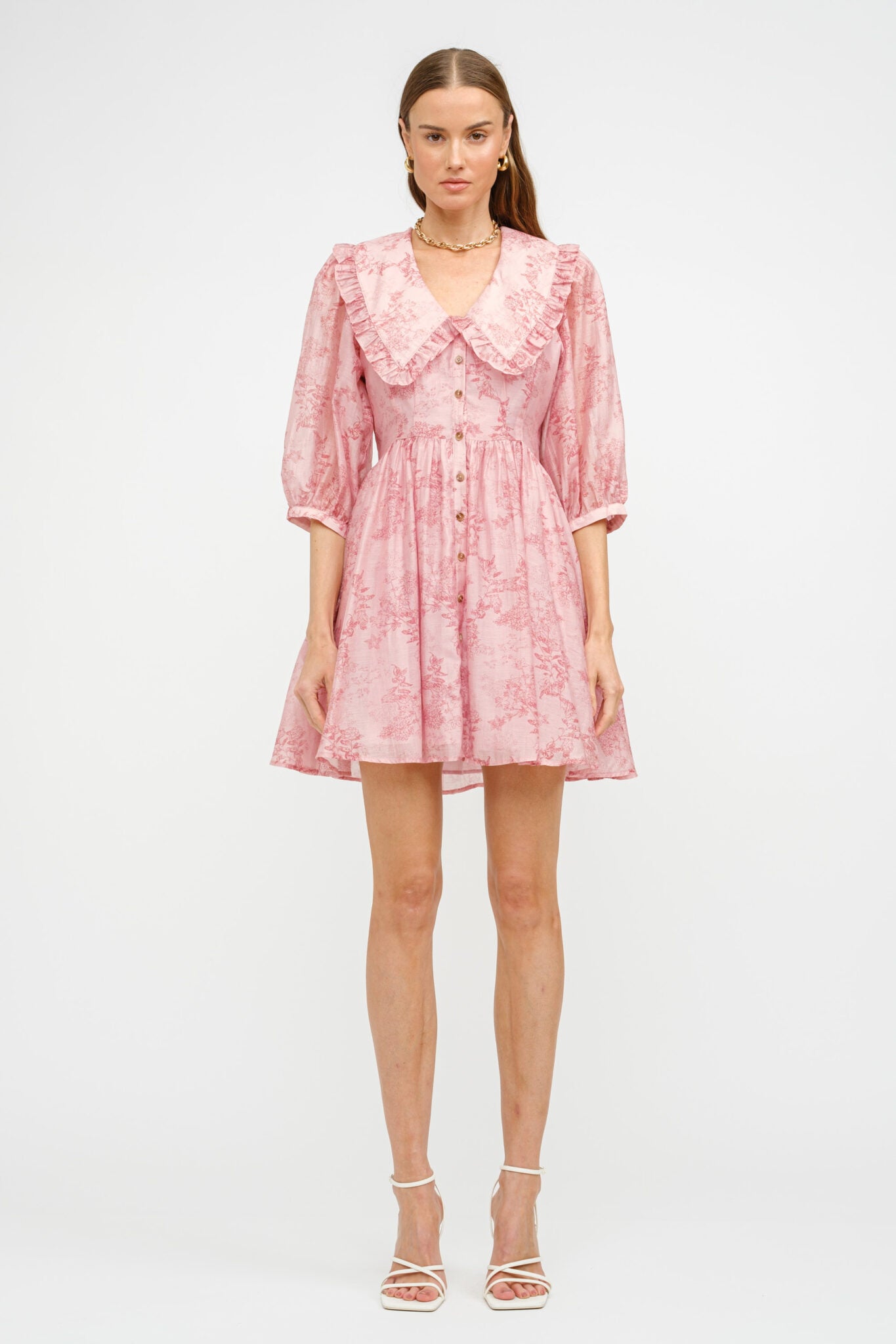 Pink and Red Floral Printed Mini Dress with Peter Pan Collar